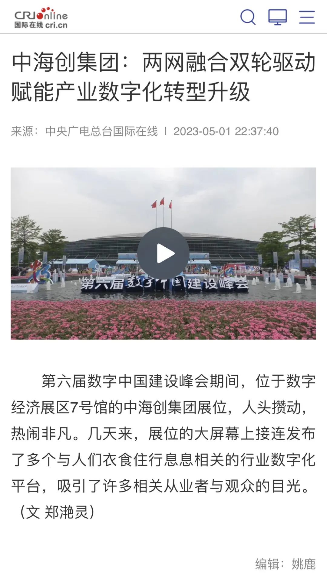 央广国际在线报道中新利网页版:两网融合 双轮驱动 赋能产业数字化转型升级